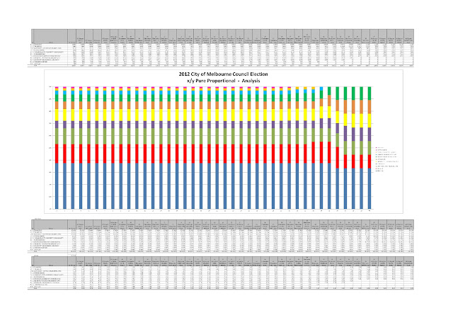 Will the Melbourne City Council take up this issue? Most likely not. The Greens benefited from the distortion in the proportionality of the count so they will not see any benefit in reform. The only team that did not was Team Doyle and Kevin Chamberlin. But the principle is clear if you believe in proportional representation then all votes should carry equal weight x/y is the purest means of calculating a quota not x/(y+1)-1