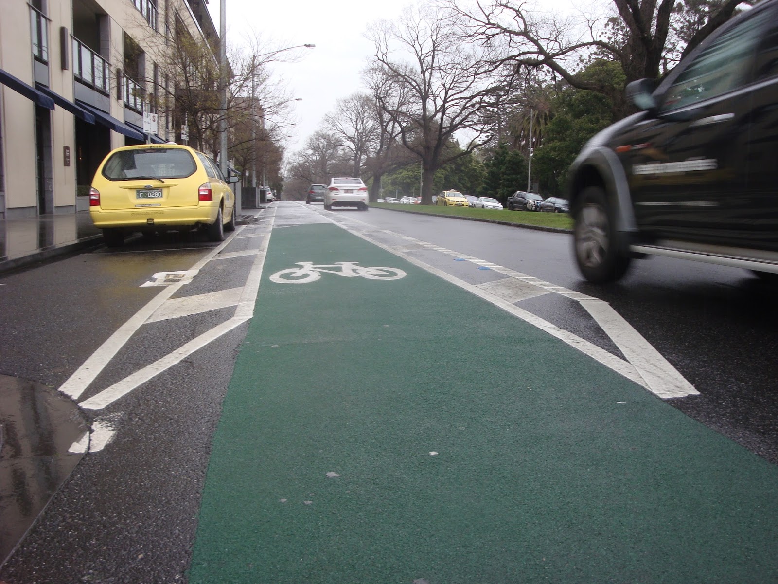 The proposed 330m St Kilda Road lane is the same design as the failed Latrobe Street bike lane. Given that teh Latrobe St Lane is not working you would be forgiven in thinking that a review of the design would be prudent if not good governance.