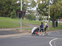 Cars exiting Park Street tuning right into St Kilda Road left in the dark as to the state of the traffic light once they cross the center road divide..